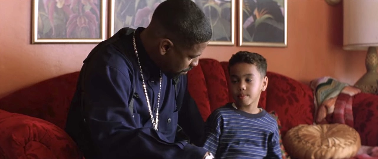 You talk that crazy shit Ill make sure that blood gets to the lab. Denzel talking to his very young boy son no. Shh son dont cry.